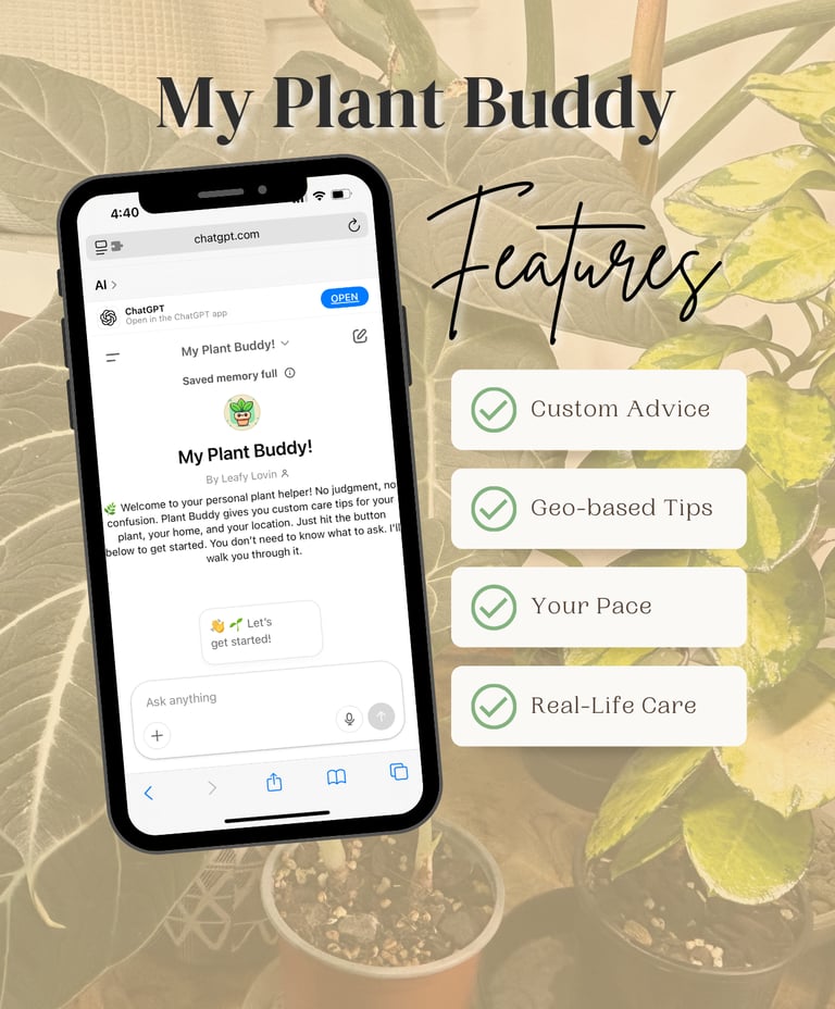 A: Free content gives everyone the same advice. My Plant Buddy considers YOUR specific plant, location, weather, and experience level.