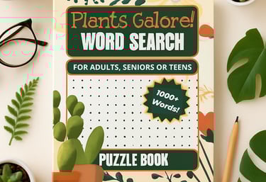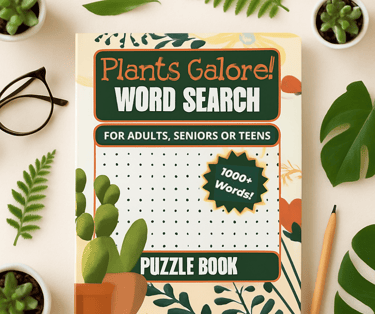 Step into the fascinating world of plants with Plants Galore! Featuring over 1,000 plant-related words, this book is perfect for anyone who loves flowers, trees, succulents, herbs, and more.